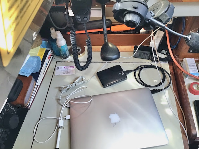 Our plan for the day revolved around Penn State's football schedule--the game starts at noon. My plan for the morning was to clean up my navigation station area--it really gets sloppy in a short amount of time, except for the small footprint that my laptop assumes.
